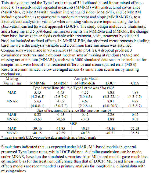 between Mixed Models and LOCF - A Simulation Study